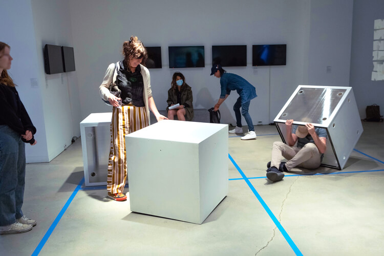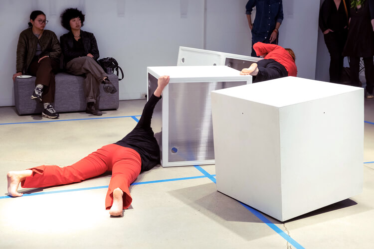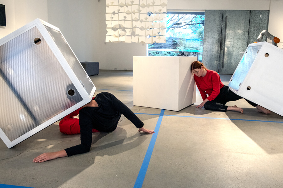 Bodies and things are inherently relational and porous, always ready to be reconfigured and entangled. The improvisational performance seeks to materialize the proposition of a more horizontal playground for dancing with machines, requiring us to get entangled and resonate with them. It means collapsing the distance between subjects and objects, stretching and opening up the boundaries between them, exploring the spaces in-between, and extending tentacles into other boundary spaces. Getting entangled, the diffractive way, Dancing with the Nonhuman activates a hybrid playground for rendering boundaries elastic and differences relational.