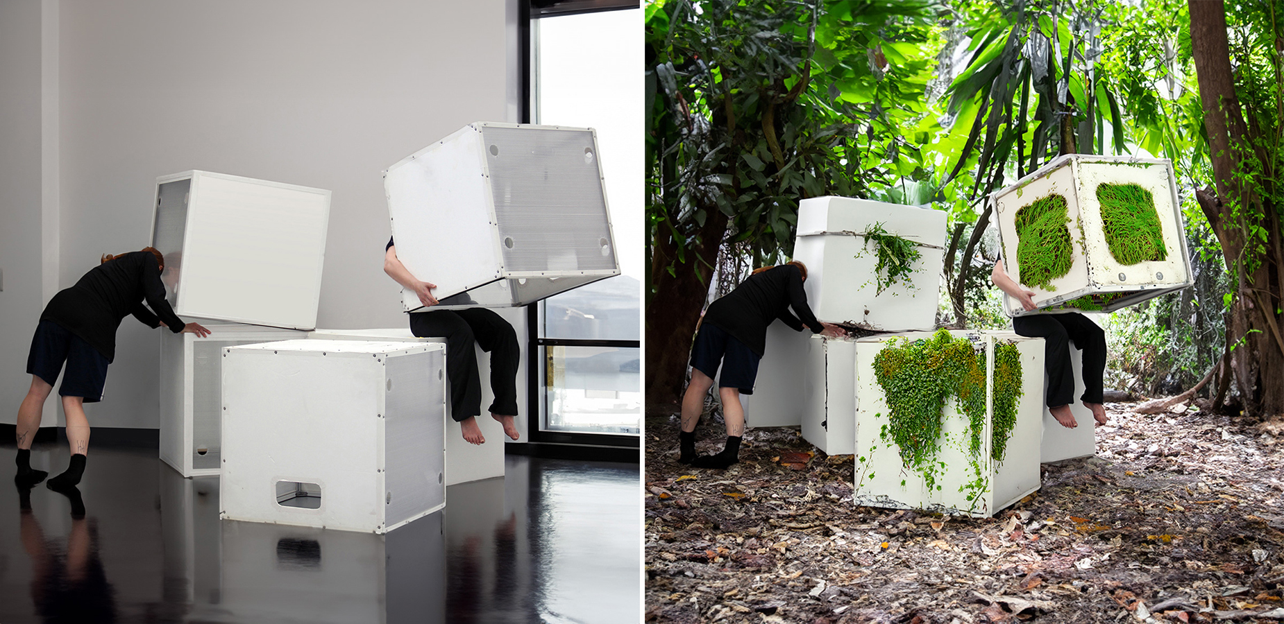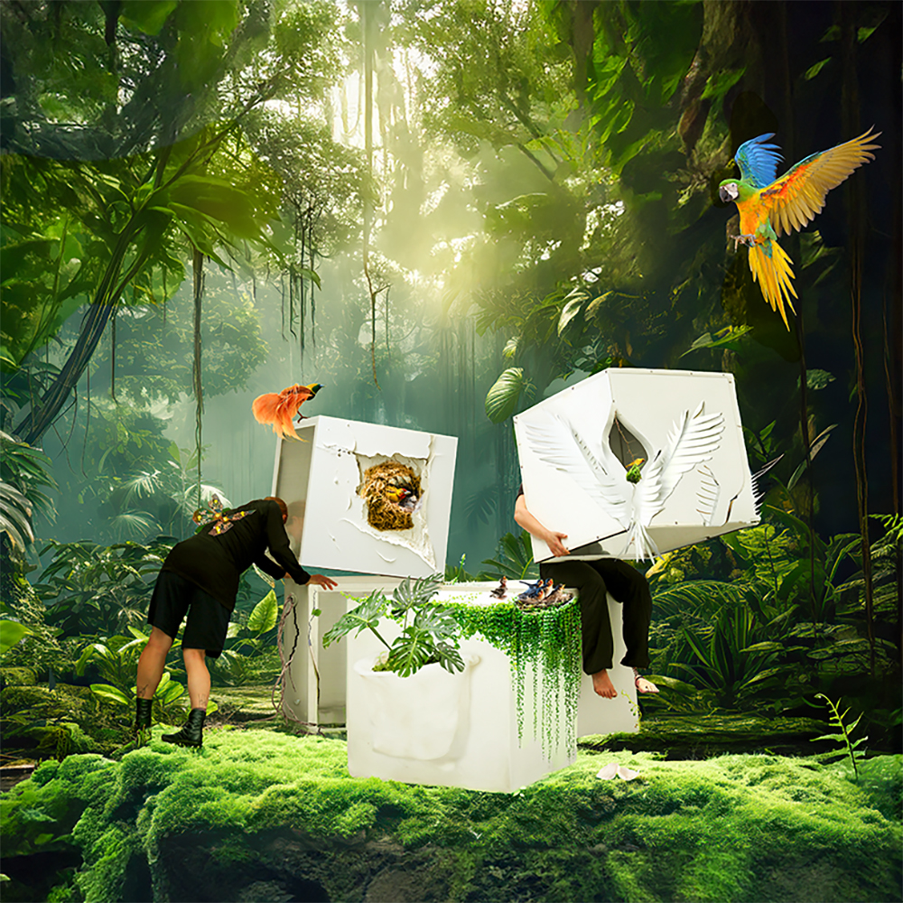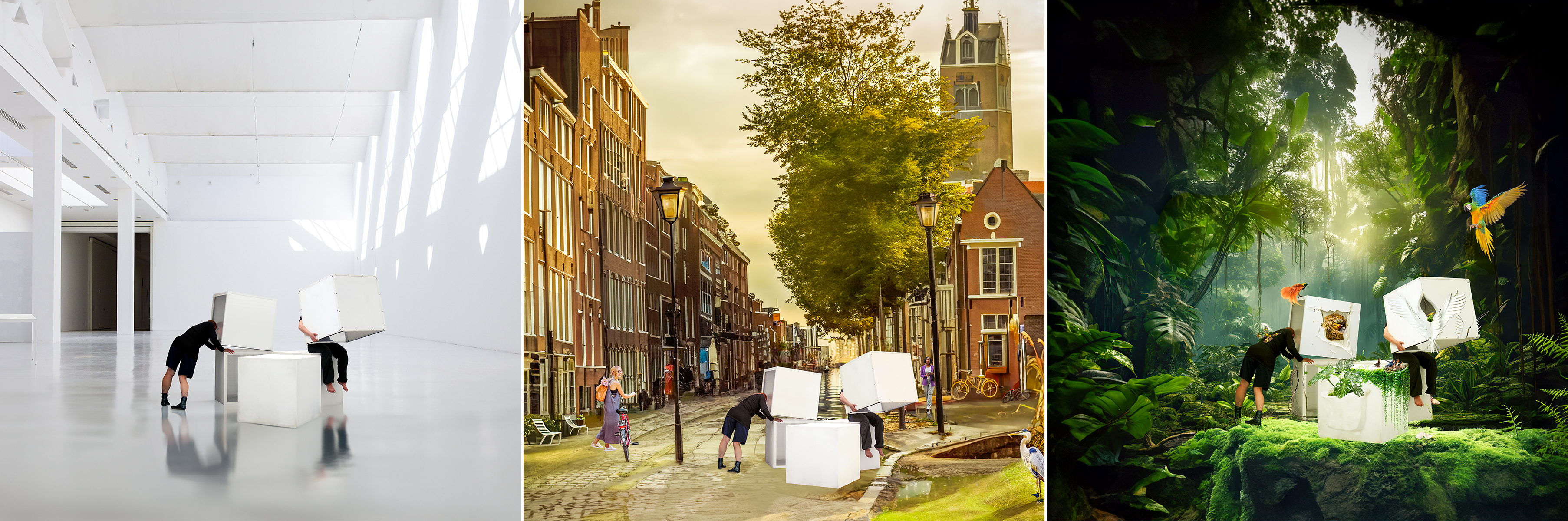 Human-Robot DadAIsm explores and extends the materials and posthuman dramaturgical concepts originating from our Human-Robot Experience (HRX) project, seeking to trouble prevailing sociotechnical imaginaries of our relationships with robots. In this posthuman performance practice, costumes embody the material and spatial affordances of robots-in-the-making to facilitate transcorporeal, more-than-human perspective-taking. Using generative AI tools, Human-Robot DadAIsm constructs extended, alternative scenarios based on a snapshot from our experimental studio practice. Triptych panel 1 explores the entanglements of dance performers and abstract, machinelike artifacts, while panel 2 reflects on robot "in the wild" studies of human-robot relationships in real-world scenarios. Occasionally, the AI proposes constellations transcending human imagination—triptych panel 3 presents a surreal, seemingly nonsensical human-robot configuration, creating a different kind of robot "in the wild". Each panel, a collaboration with a generative AI model, serves a core objective of our research project: the first depicts the horizontal playground of the studio environment. The second panel reframes the entanglement produced in this context, expanding sociotechnical imaginaries while highlighting the mismatch of studio-born human-robot relationships relocated in the real world. The third panel propels our imagination into a fantastic more-than-human realm—a satirical materialization of the ethico-onto-epistemological mess shaping many future fantasies. Ironically, the latter may offer more diverse and sustainable more-than-human-robot constellations than we currently imagine.